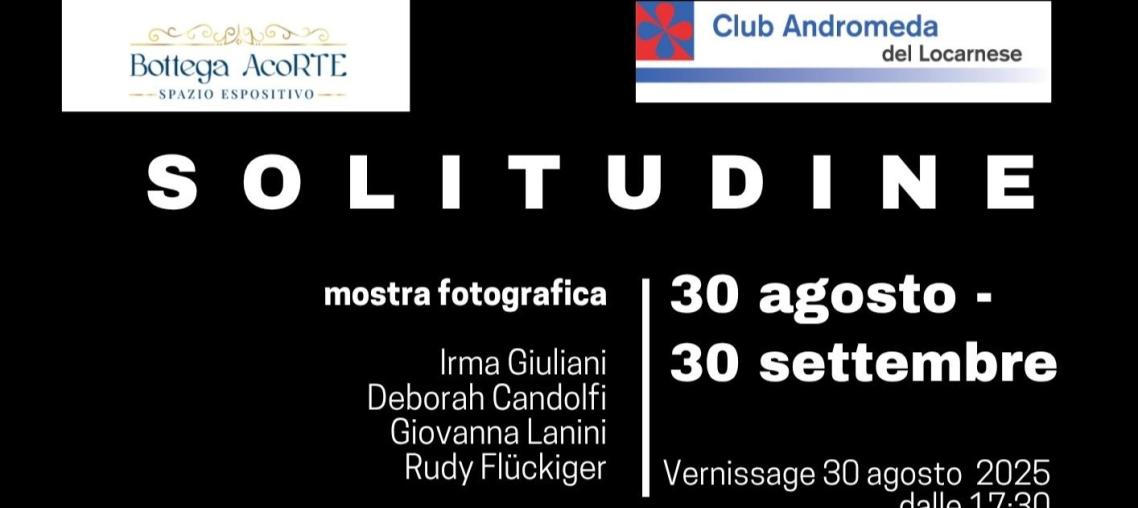 Il prossimo sabato 30 agosto 2025, alle ore 17.30, si terrà il vernissage della mostra fotografica collettiva “La solitudine”, presso lo spazio espositivo Bottega a corte di Via delle Corporazioni 7 a Locarno.