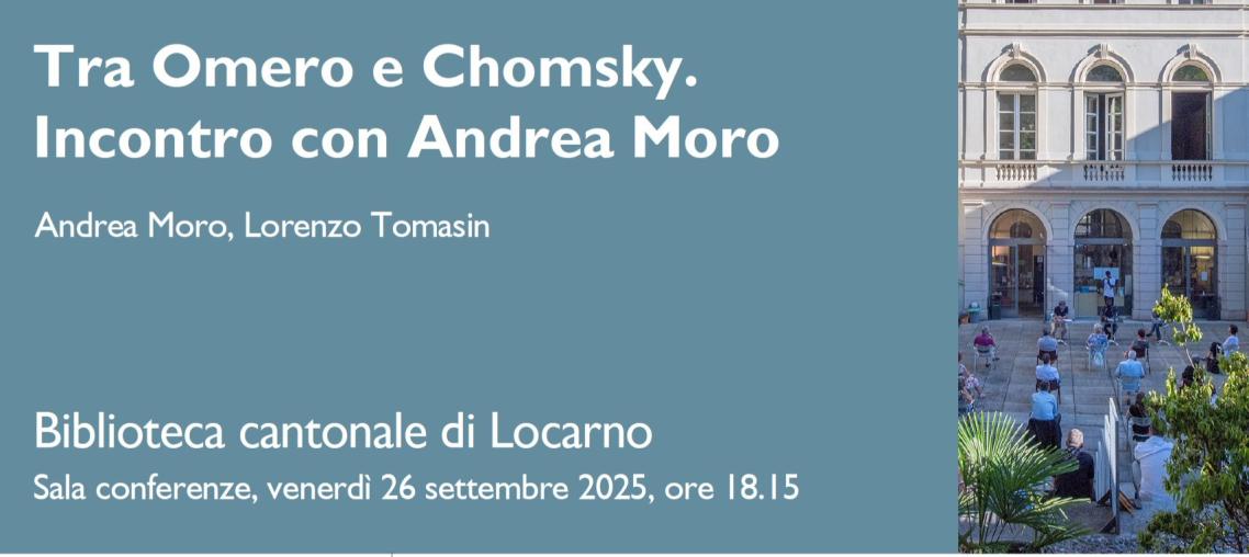 Andrea Moro discute intorno alle sue ricerche e all’ultima fatica letteraria – il romanzo Cinquantun giorni (id., 2024) – con Lorenzo Tomasin, professore ordinario di filologia romanza e storia della lingua italiana dell’Università di Losanna. Modera la serata Stefano Vassere, direttore delle Biblioteche cantonali.