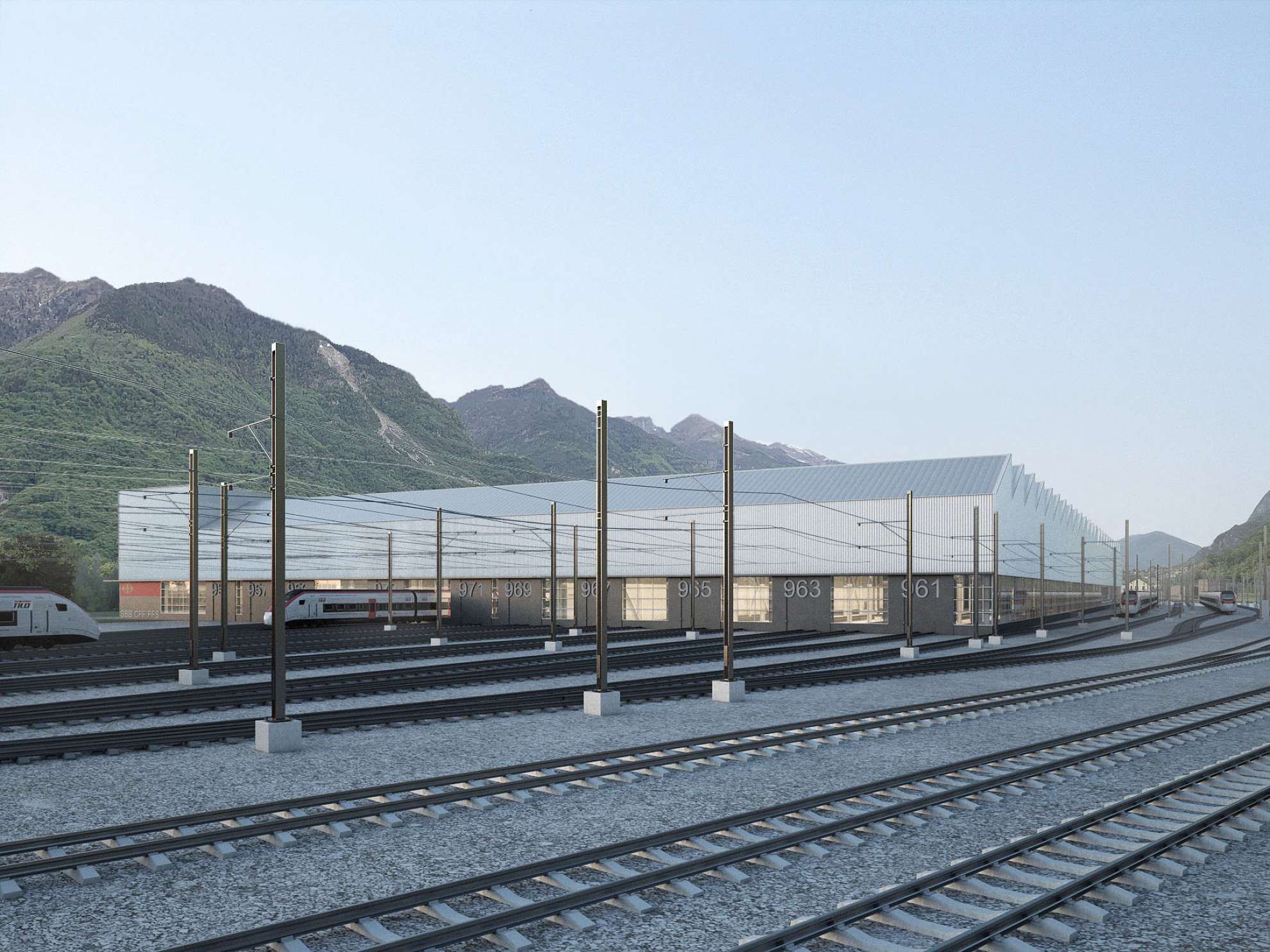 FfsIl rendering indica forma e dimensioni di edificio e collegamenti ferroviari