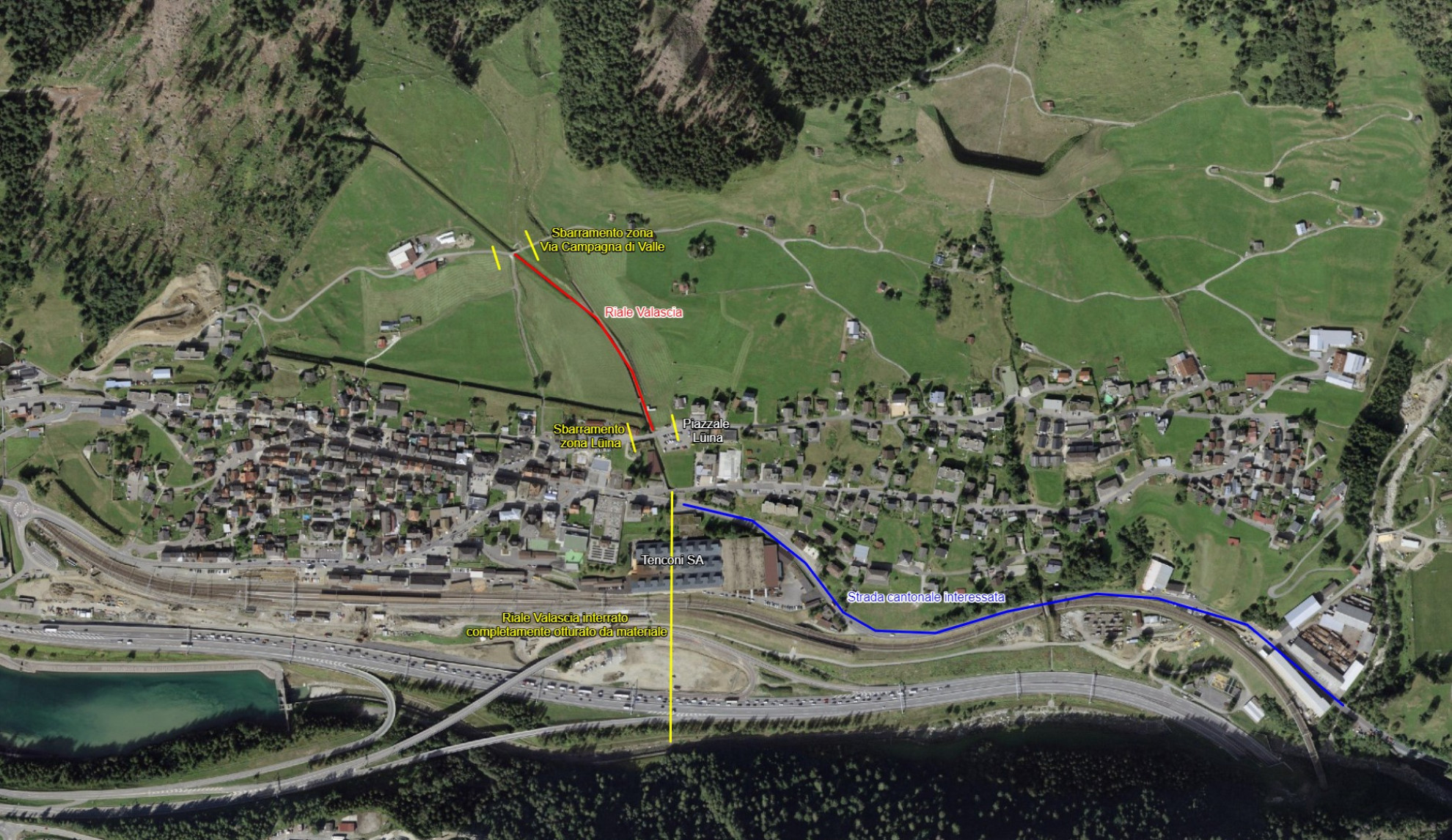 La colata del torrente Valascia, a monte del nucleo, ha ostruito il canale di 300 metri che passa sotto la Tenconi, la stazione e l’A2