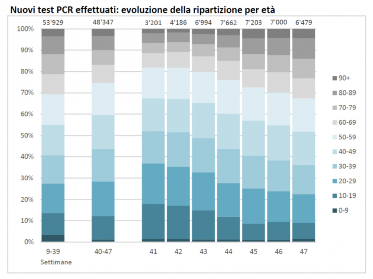 Durante l'estate «abbiamo continuato a monitorare la presenza del virus sul territorio, con circa 500 test al giorno, e un tasso di positività attorno all'1%. Ciò significa che, allora, il coronavirus circolava poco o nulla». Sino alla ripresa, a inizio ottobre, con la seconda ondata. «Durante l'estate la grande maggioranza dei test effettuati erano a carico di presone giovani, mentre invece nelle ultime settimane sono aumentati quelli per gli over 50. Nell'ultima settimana questa fascia di età rappresenta quasi la metà di tutti i tamponi».