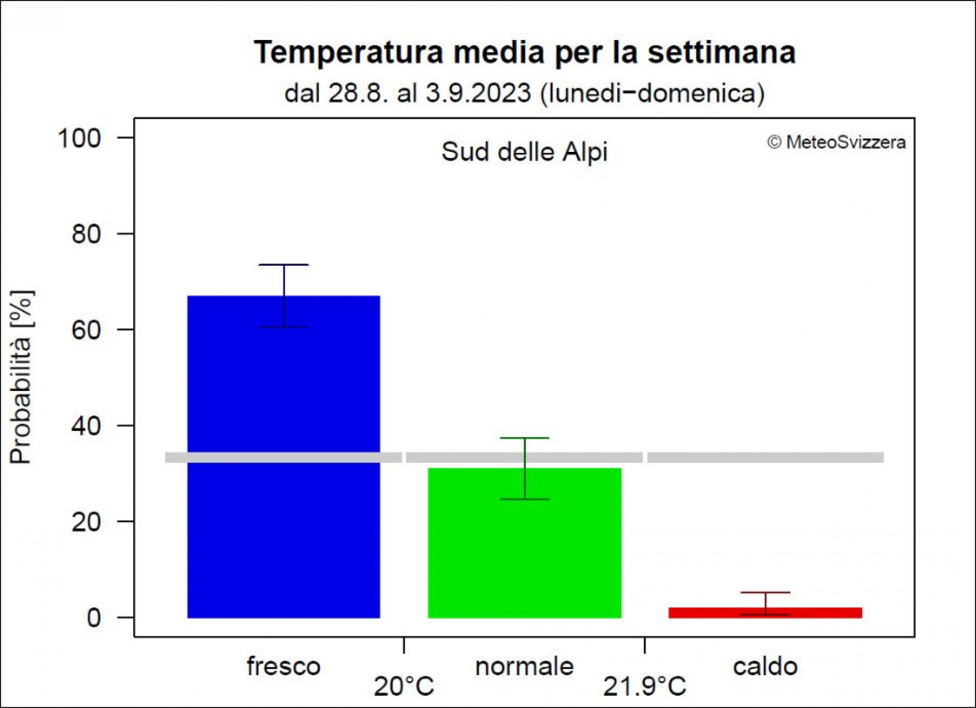Da lunedì le temperature massime non supereranno più 25 gradi, e la differenza dai 33-35 gradi odierni si farà sentire. Per quel che riguarda lo scarto dalla media se oggi si fissavano 6-9 gradi sopra la norma stagionale la prossima settimana torneremo attorno di essa, o leggermente al di sotto. Le temperature medie attuali, giovedì comprese fra 26,1 e 28,7 gradi in pianura, scenderanno di almeno 10 gradi.