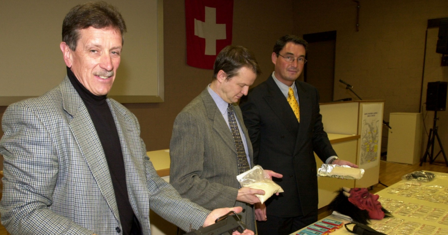 Armi e droga sequestrate nel 2001. A sinistra, Galusero