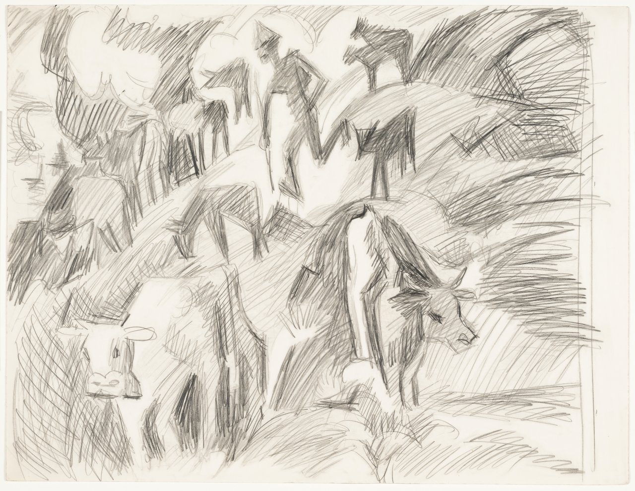 È proprio Davos, dove morirà suicida il 15 giugno del 1938, che il pittore e scultore tedesco sceglie quale buen retiro nel gennaio del 1917. Kirchner giunge da Berlino per ricostruire un equilibrio psico-fisico minato dallo scoppio della Prima Guerra Mondiale. L'onda lunga del Terzo Reich comunque non lo risparmierà, destinando alcune delle sue opere a un pubblico ludibrio itinerante chiamato ‘Entartete Kunst’ (Mostra d'arte degenerata). ‘Ernst Ludwig Kirchner e la grandiosità della montagna’ è mostra focalizzata sulla produzione di Kirchner durante il suo soggiorno nelle Alpi svizzere. «Porta a Davos la sua esperienza berlinese, riadattando quelle tematiche», spiega Carla Burani, in nome e per conto del locale Kirchner Museum. «Il Kirchner urbano lascia spazio alla natura e ai corpi immersi in essa, per riscoprire quella connessione con se stessi che è propria dell'espressionismo». Quello che Burani definisce «ritorno all'essenziale» è documentato a Lugano – insieme ai dipinti – nella totalità delle tecniche utilizzate in vita, e dunque gessetto, carboncino, acquaforte, matite, litografie, xilografie, incisioni, complesso non meno incisivo nel percorso che dai pastori a piano terra si estende a tutto il resto, un paio di rampe di scale più in alto.