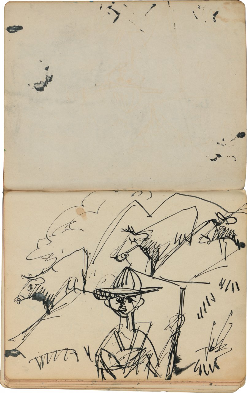 Bozzetti, lavori preparatori e schizzi, di ‘Ernst Ludwig Kirchner e la grandiosità della montagna’, hanno un fascino particolare. A piano terra, una teca ‘floreale’ accoglie un estratto di quel ‘dietro le quinte’, riportandoci l'attitudine di Kirchner che ritrae quotidianamente la ‘sua’ montagna e la propria vita: «Sono due dei 161 taccuini di schizzi custoditi a Davos. Molti di essi sono stati privati di alcune pagine, oggetto di vendita singola». Poco sopra, uno dei cinque album fotografici riportanti gli scatti delle opere dell'artista: «Kirchner era metodico, attento. Gli album erano un'occasione di promozione personale». Giunta fino a noi.