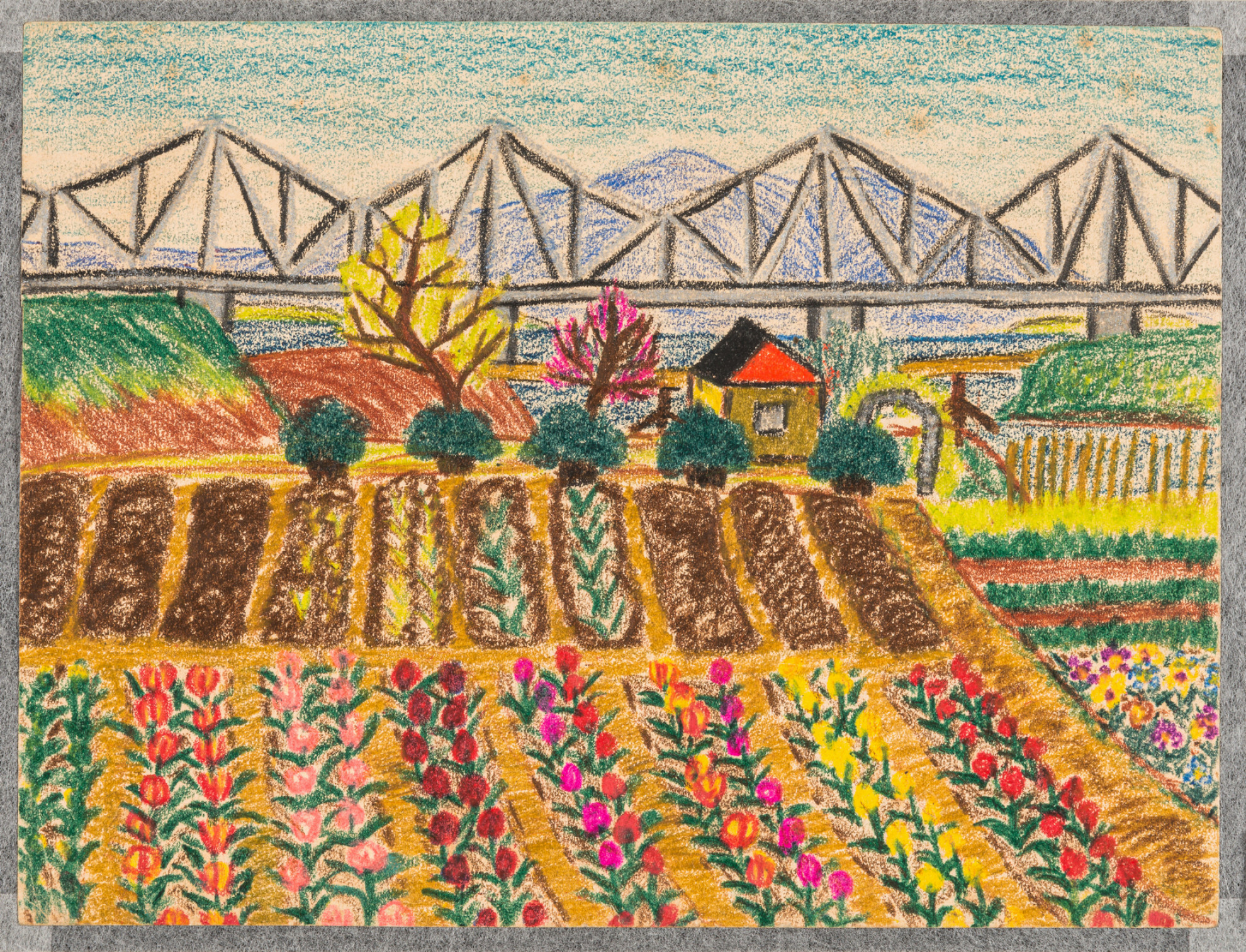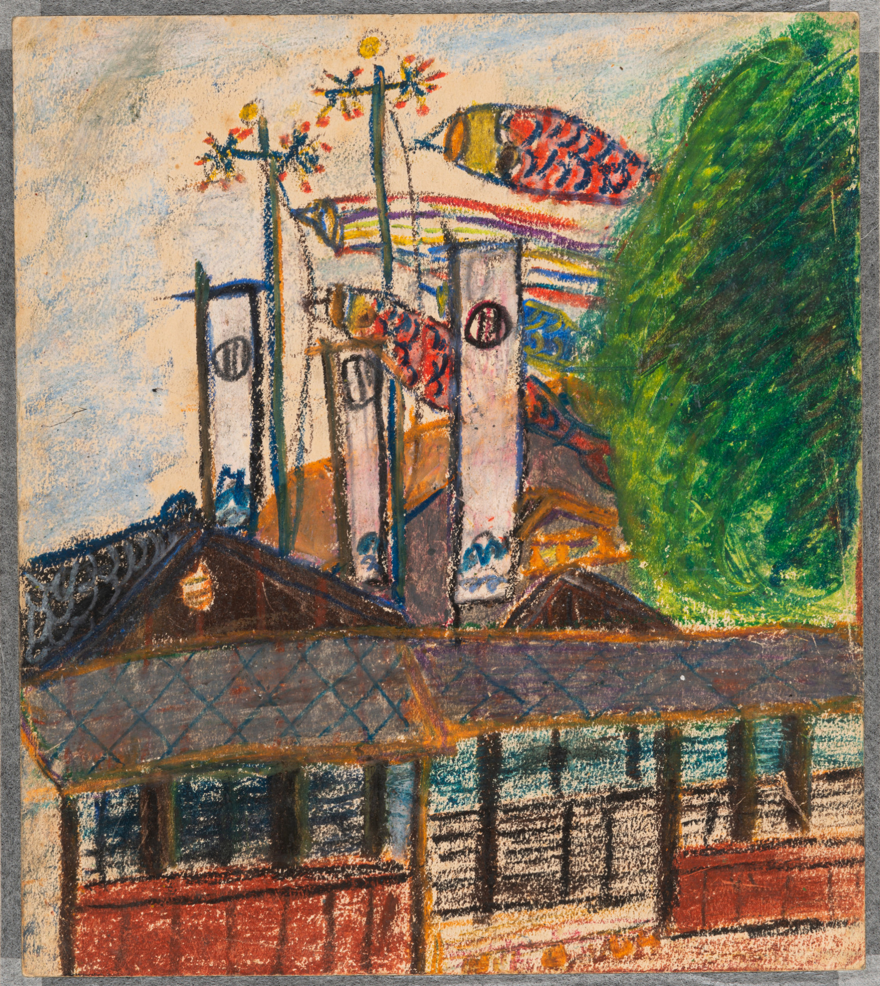 Le atmosfere e gli scorci del paesaggio quotidiano raccontati liberamente da bambini e ragazzi impressionano per la qualità della resa, per la maturità formale aiutata anche dalla tecnica con pastello a olio, strumento artistico e non didattico che dà possibilità di espressione elevate, come hanno spiegato i curatori durante la presentazione alla stampa. Citiamo: “Il perfezionamento di uno strumento pittorico così efficiente e adatto alle potenzialità espressive dei bambini giapponesi si deve al genio del pittore Yamamoto Kanae (1882-1946), che fu tra i fondatori del movimento modernista Sōsaku-hanga («Stampe creative»). Le sue teorie pedagogiche, ampiamente adottate nelle scuole elementari del tempo, sostenevano l’importanza dell’autoapprendimento creativo, del disegno dal vero en plein air e di un uso massiccio del colore, lasciando al bambino la scelta dell’oggetto della rappresentazione e la massima libertà degli accostamenti cromatici”.