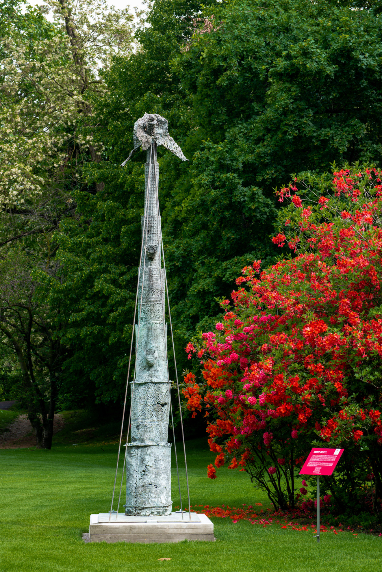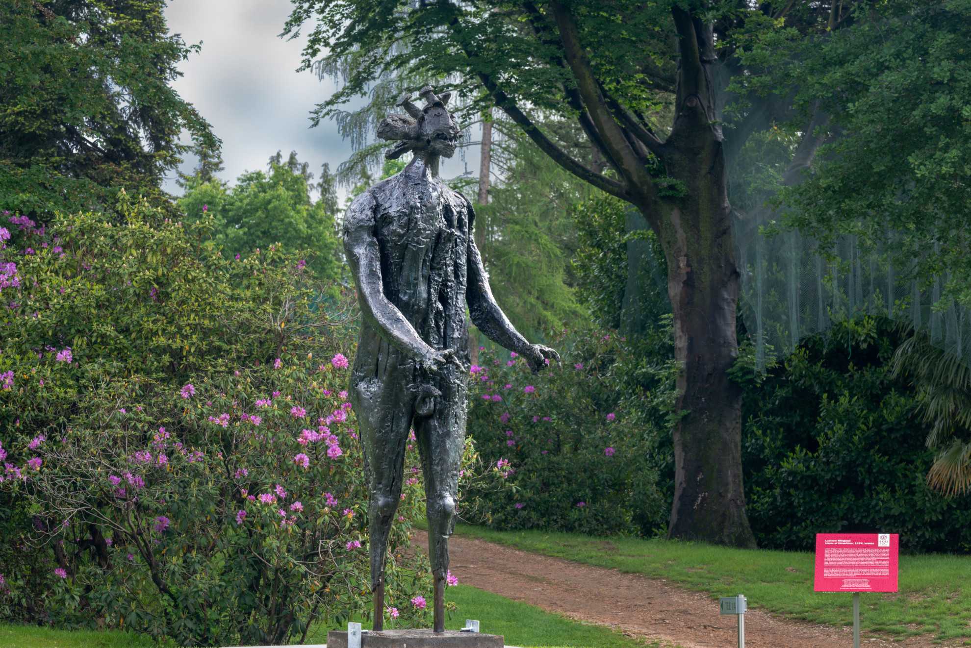 Con il paesaggio prealpino sullo sfondo, addentrandosi nella cornice del campo da golf, ci si immerge nel verde di una vegetazione bucolica e nel profumo di erba sempre appena tagliata ed è lì, nelle vicinanze delle buche, che si scoprono le opere; alcune ricordano i rami di un albero (come ‘Il gatto dorme rotondo’ di Giuseppe Maraniello), oppure dei nidi, altre sono figure più riconoscibili: un ‘Guerriero’ (di Giuseppe Spagnulo), due fanciulle (‘Double face’ di Giacomo Manzù); ognuna con la sua storia e il suo tempo.