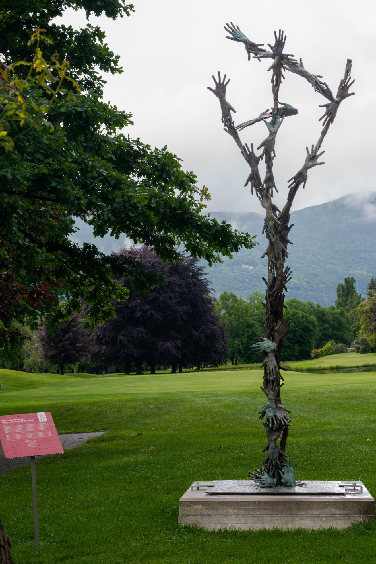 La mostra ‘Capolavori en plein air, scultura italiana del Novecento opere della collezione Loi’, realizzata in collaborazione con il Musec (Museo delle Culture) di Lugano, s’inserisce all’interno del programma di eventi e iniziative promosse per i festeggiamenti del centenario: «Abbiamo voluto creare un connubio tra arte e sport», ha dichiarato Giuseppe Rossi, presidente del Golf Club Lugano. Ogni opera è stata selezionata «sulla base dell’intensità e della qualità artistica, senza ovviamente dimenticare l’armonia che si sarebbe dovuta instaurare tra opere e paesaggio», spiega la curatrice Nora Segreto. Un esempio è ‘Elogio delle mani’ di Paolo delle Monache, che pur prediligendo dettagli anatomici nella sua ricerca artistica (in questo caso le mani), riesce a interagire in armonia e finitezza con le forme della natura.