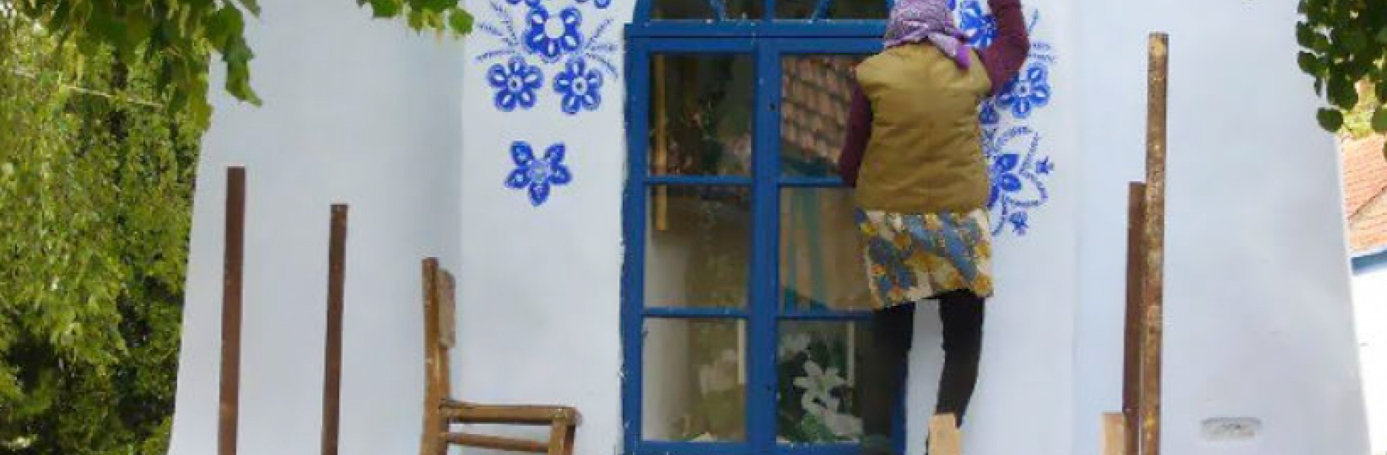 Agnes ha, infatti, sempre lavorato nei campi, fino alla pensione. Poi, quando ha smesso, ha iniziato a dedicarsi alla sua vera passione: la pittura. Dopo alcune lezioni da un’insegnante della zona ha deciso di praticare direttamente sulle pareti delle case di Louka, per renderle più belle, più accoglienti e più vivaci, come ama dire.