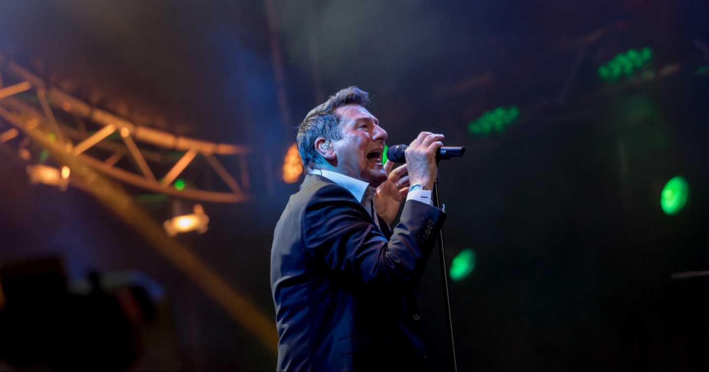 Il cantante britannico, ex frontman del gruppo musicale leader del filone musicale New Romantic e da più di trent'anni in carriera come solista, assieme alla band che lo accompagna, ha proposto il proprio repertorio rimanendo seduto su uno sgabello e con la gamba infortunata stretta da una evidente fasciatura.