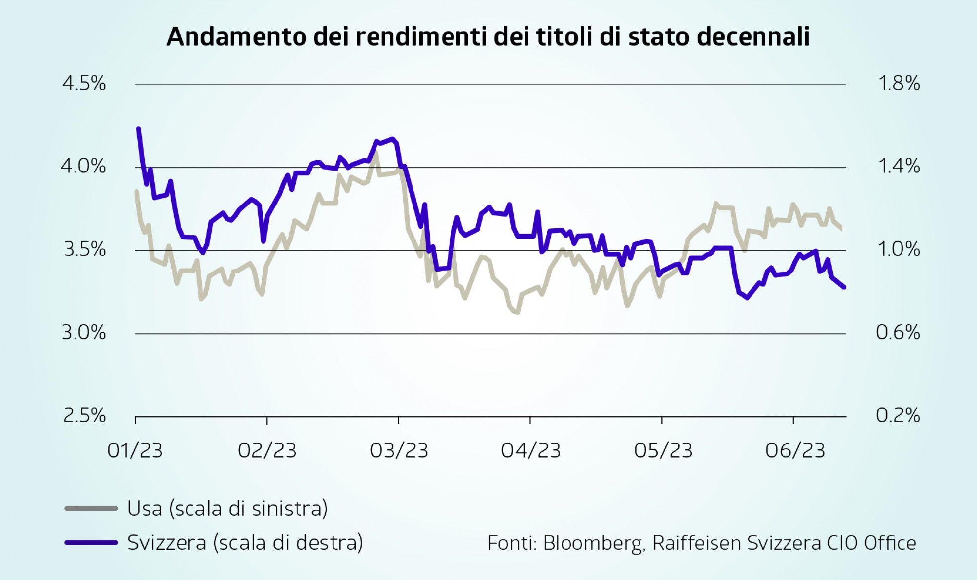 Negli ultimi mesi, le banche centrali hanno aumentato ulteriormente i tassi di riferimento, e allo stesso tempo riducono gli acquisti obbligazionari per sottrarre liquidità ai mercati finanziari. Pertanto, adesso anche i titoli di Stato sicuri generano nuovamente rendimenti nominali molto positivi. A nostro avviso le banche centrali raggiungeranno a breve il picco del ciclo restrittivo, per questo motivo, i tassi del mercato dei capitali dovrebbero aver concluso buona parte della fase di crescita, come si evidenzia già nei titoli di Stato Usa decennali. Allo stesso tempo, negli ultimi mesi le curve dei tassi si sono appiattite e in parte invertite, tenendo così conto dei maggiori rischi di recessione. La volatilità dei mercati obbligazionari dimostra anche che l’orientamento più restrittivo della politica monetaria non è privo di conseguenze.