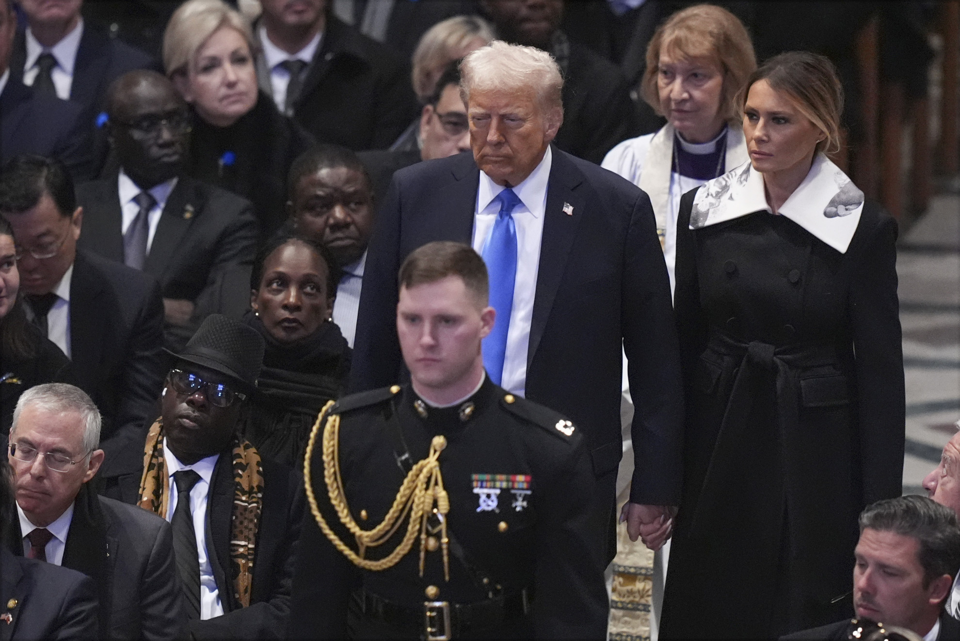 "Abbiamo l'obbligo di non dare all'odio alcun porto sicuro e di opporci... al più grande peccato di tutti, l'abuso di potere": è il monito lanciato da Joe Biden nel suo elogio funebre nei solenni funerali di stato dell'ex presidente democratico Jimmy Carter nella Washington National Cathedral, dove è stata eseguita la fortemente simbolica ‘Imagine’ di John Lennon. Chiusa anche Wall Street per lutto nazionale. Un passaggio che è risuonato come una frecciata a Donald Trump, in seconda fila con Melania insieme ai Clinton, ai Bush e a Barack Obama, con cui ha scambiato una lunga conversazione. Giallo invece sull'assenza di Michelle, pare rimasta alle Hawaii - dove la famiglia trascorre le vacanze natalizie - per non meglio precisati "impegni confliggenti". Ma i maligni insinuano che sia perché avrebbe dovuto sedersi accanto all'odiato tycoon in un posto poi occupato dal marito. Presenti anche il segretario generale dell'Onu António Guterres, il principe Edoardo, duca di Edimburgo, e il premier canadese Justin Trudeau.
