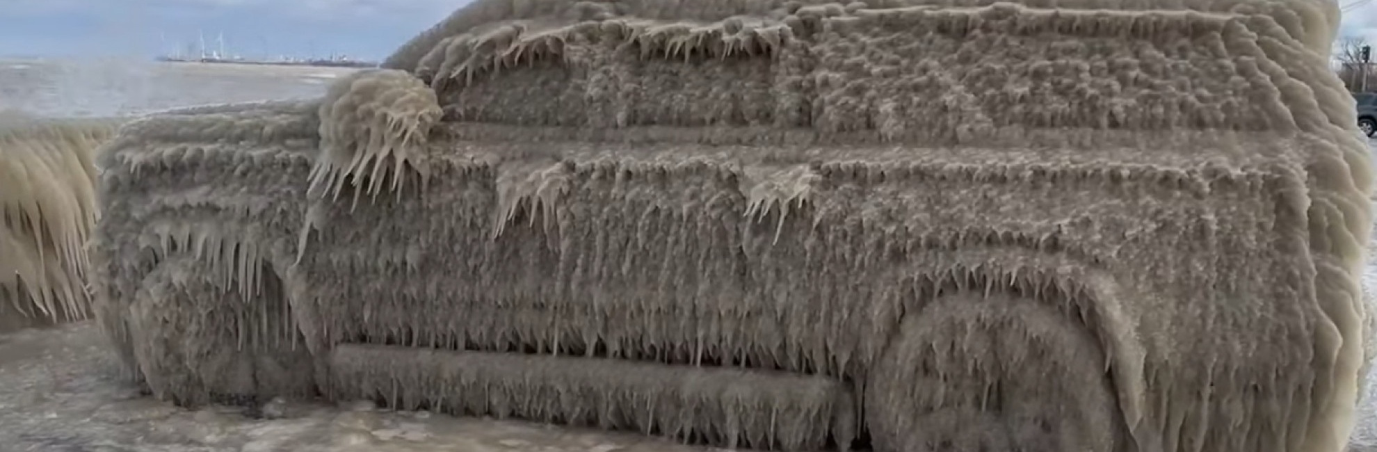 Vediamo in particolare un'auto ricoperta dal ghiaccio per il grande freddo. È posteggiata lungo il lago di Erie che bagna la città statunitense di Buffalo, nella zona dei Grandi Laghi.
