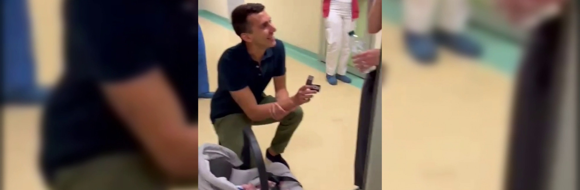 Il bambino è stato finalmente dimesso avendo raggiunto il peso di 3kg, e all'uscita dall'ospedale è arrivata la sorpresa: la tutina recava il messaggio "Mamma, vuoi sposare il mio papà?", e sulle note di "Supereroi" di Mr.Rain il giovane padre si è inginocchiato mostrando l'anello alla mamma. I momenti di immensa commozione sono stati immortalati in un video diffuso sui social dell'ospedale.