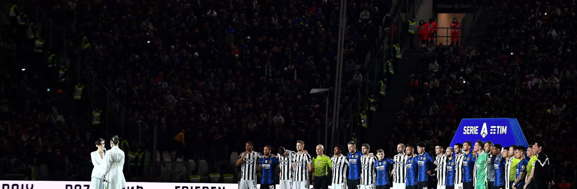 Le voci dell’italo-brasiliana Gaia e dell’ucraina Pavlenko aprono la sfida di Serie A italiana tra Juventus-Inter con il celeberrimo brano di John Lennon