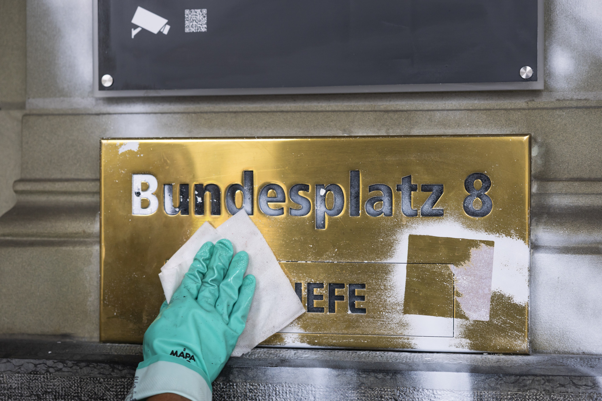 KeystoneVernice e spray anche in BundesplatzChi agisce in modo violento contro la polizia, sempre secondo l'alleanza, dovrebbe poi essere punito con una pena detentiva di almeno un anno. Inoltre, le persone sottoposte a controlli durante una manifestazione dovrebbero poter essere arrestate in via provvisoria fino a 48 ore e saranno tenute a risarcire i danni materiali causati.