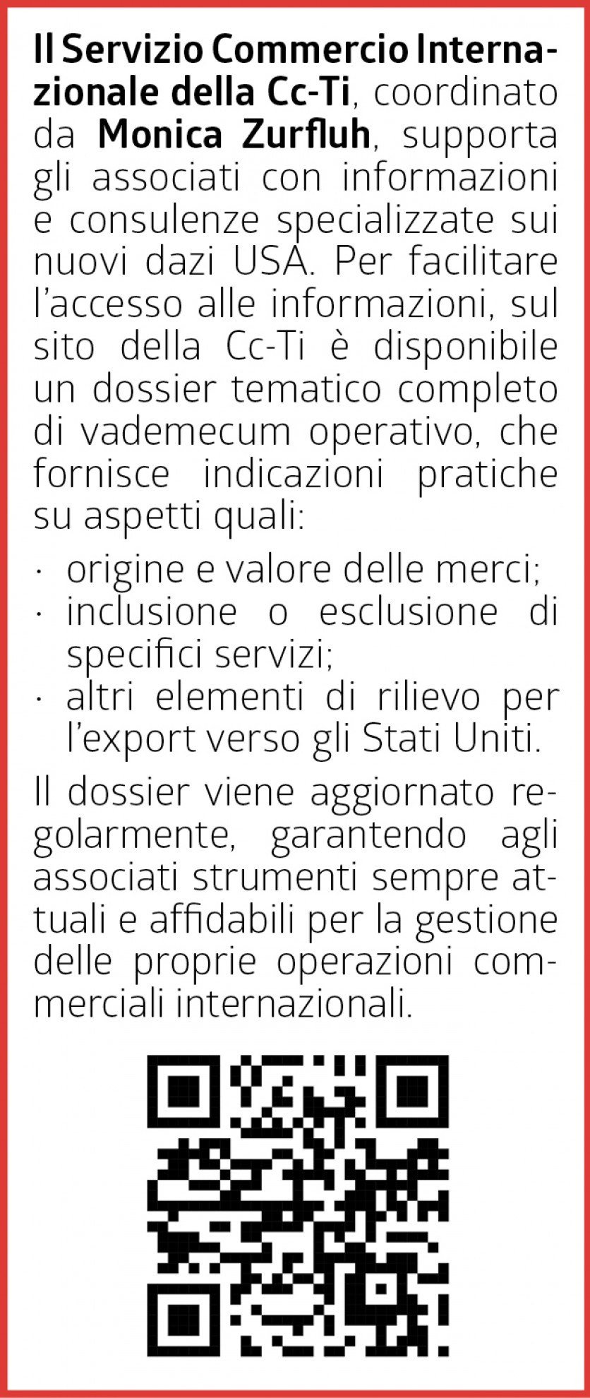 Nei nostri recenti interventi abbiamo più volte sottolineato la complessità del quadro generale. Parlare di delocalizzazione come risposta immediata non è realistico, perché trasferire anche solo una parte di un’attività produttiva richiede tempo, capitali e analisi approfondite. E una volta delocalizzata l’attività non si può fare marcia indietro a piacimento. Lo stesso vale per l’apertura di nuovi mercati. Un percorso che le imprese svizzere intraprendono in modo sistematico da anni, spesso indipendentemente da situazioni di crisi. Non è infatti da vedere come una mossa “disperata” dettata da necessità contingenti, bensì di un lavoro continuo, che comporta investimenti, valutazioni di rischio, ricerca di partner affidabili e tempi fisiologici di consolidamento.