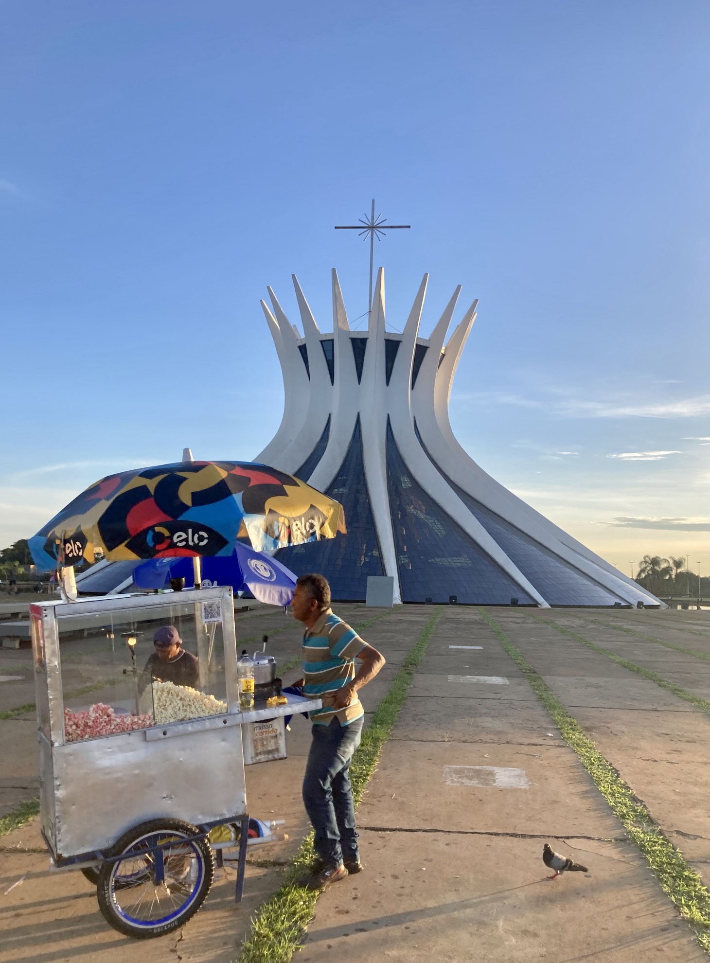 Lì ci si arriva dopo un lunghissimo peregrinare tra i palazzi che fanno di Brasilia un luogo unico, a cominciare dal quartiere generale dell’esercito passando per il memoriale dedicato a Kubitschek, fino alla Cattedrale, le cui forme ardite sono amplificate dall’enorme vuoto intorno. Un effetto voluto che non viene colmato dai carretti e dai tavolini dei venditori di cibo di strada e souvenir-paccottiglia, semmai ingigantito per contrasto. Non è da meno il museo nazionale, con le forme esasperatamente arrotondate, che pare un pezzo della Discovery One di 2001: Odissea nello spazio (e, anche se non ho trovato le prove, sono certo che sia Kubrick che George Lucas per Star Wars si siano ispirati in qualche modo a Niemeyer).