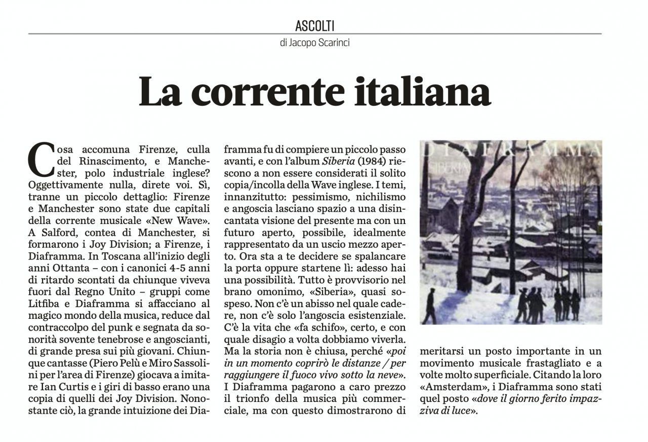 C’era una volta la scena fiorentina: ovvero i Litfiba, i Neon e i Diaframma. Ma c’era anche la I.R.A. Records, storica etichetta che oltre al gruppo di Piero Pelù annoverava pure i Moda (non i Modà...) e gli Underground Life di Giancarlo Onorato. Insomma, tanta roba, si direbbe oggi. Erano i primi anni Ottanta, quelli del post-punk e dell’onda lunga della new wave britannica, con mezzo mondo a riscoprire i defunti Joy Division. Anche il chitarrista Federico Fiumani (classe 1960) si butta nella mischia e fonda i Diaframma. Il gruppo pubblica almeno un capolavoro (Siberia, 1984) e dopo il terzo disco (Boxe, 1988) manda tutti a casa, per poi ripartire nel 1989 con Massimo Bandinelli al basso e Fabio Provazza alla batteria. Esce un 12 pollici dal titolo Gennaio: quattro brani, inclusa la traccia omonima. Il piglio è più rock-punk e meno introspettivo degli esordi, segnato da una sezione ritmica senza fronzoli e una voce diretta. Il testo segue a ruota. Le tracce dell’EP verranno incluse nella raccolta Da Siberia al Prossimo Week-End (1991). I Diaframma, sempre vivi e vegeti, nel 2018 hanno prodotto L’abisso, il loro 20esimo album.